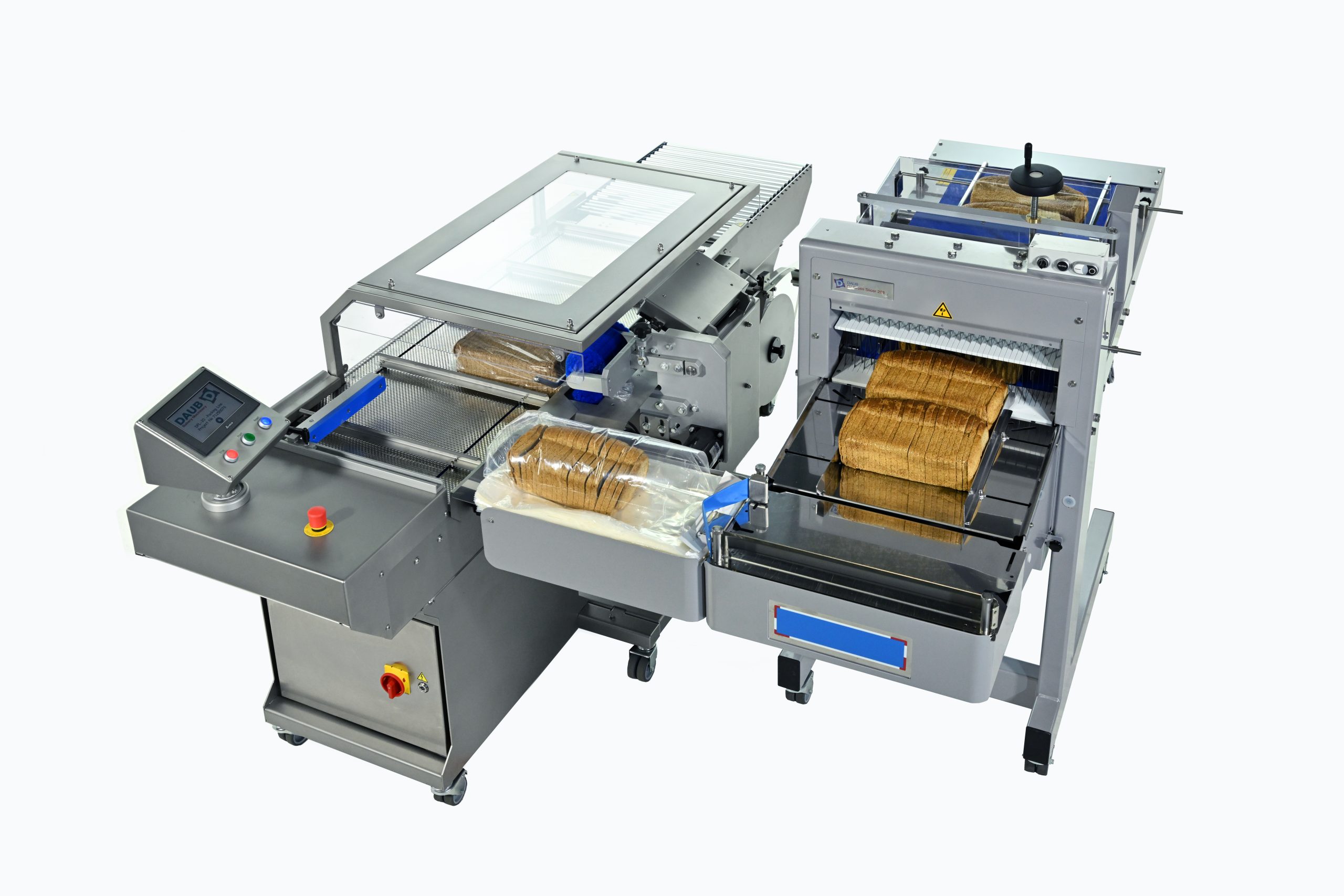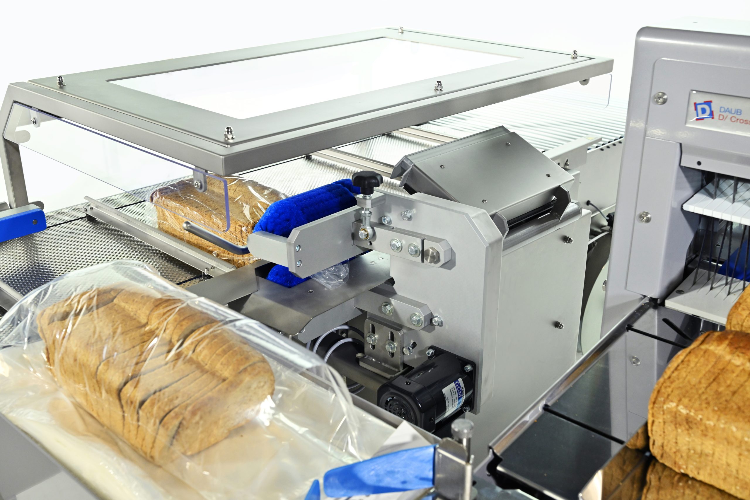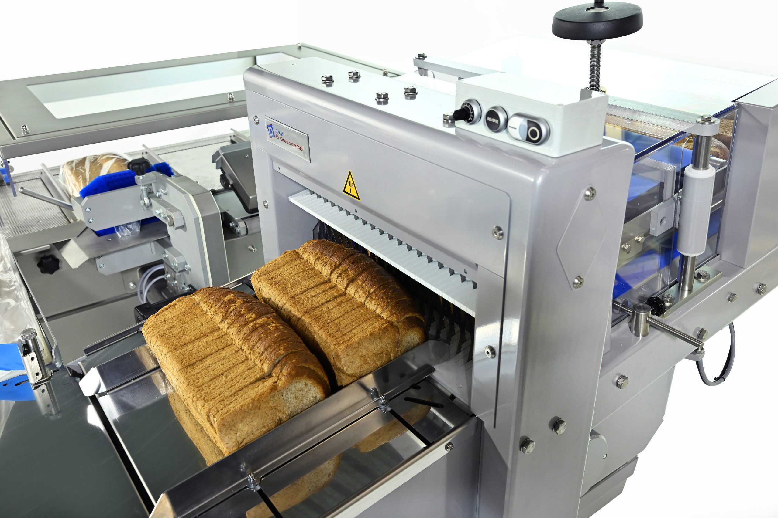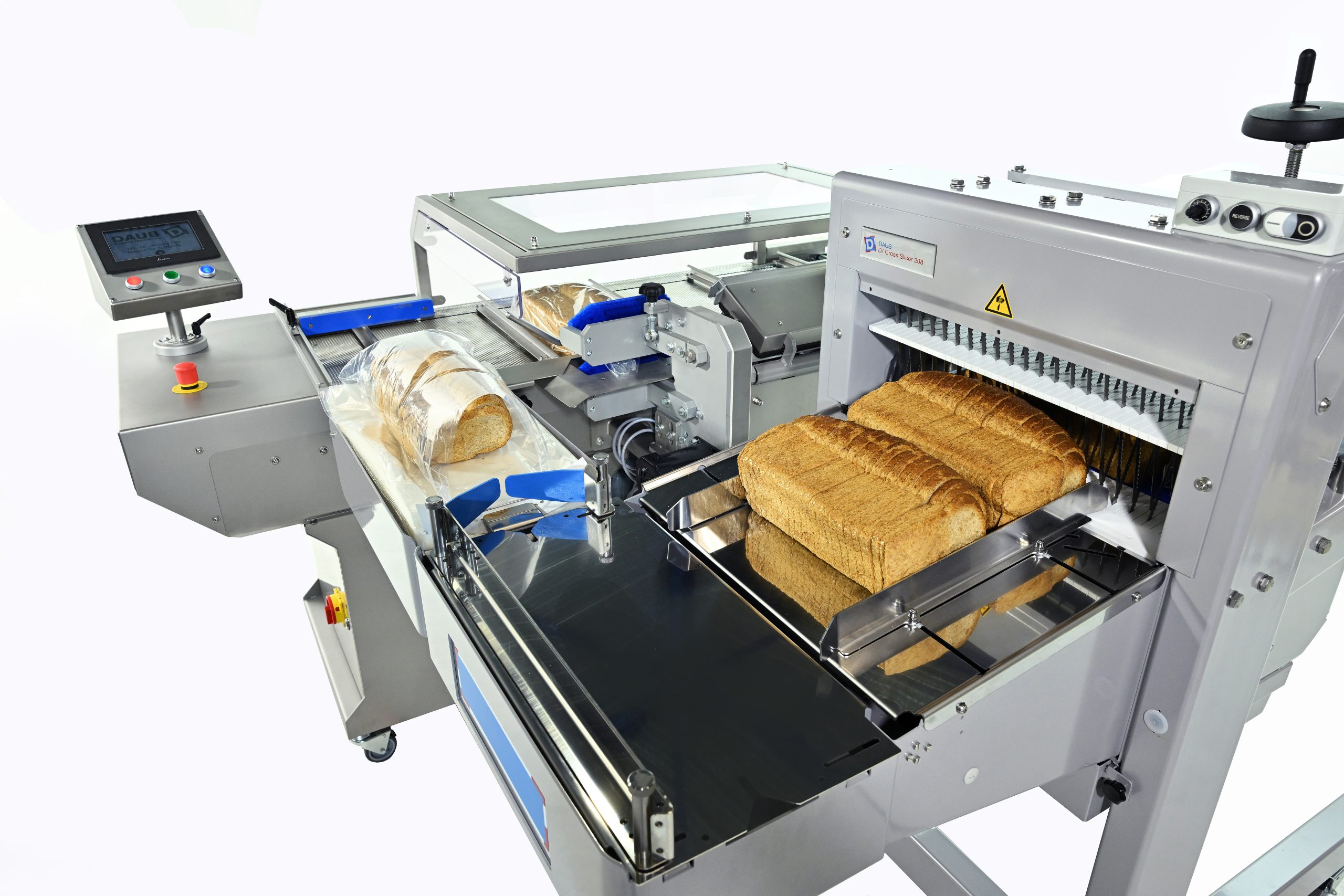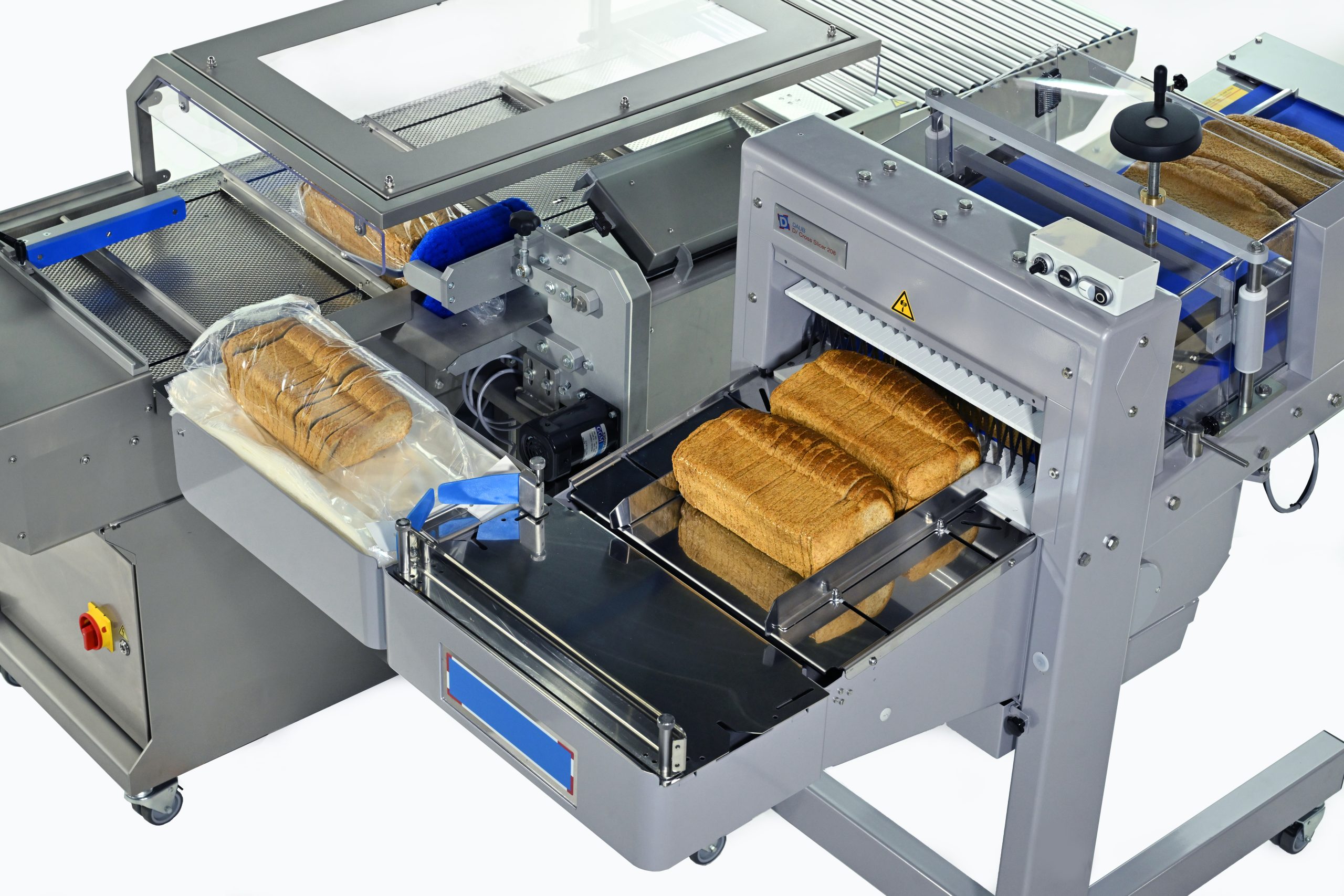 Daub heeft een semi-automatische verpak- en sluitmachine ontwikkeld; de perfecte aanvulling op de D/ Cross Snijder 208. De complete eenheid bestaat uit een broodsnijder, zakopblazer, transportbaan met zaksluitsysteem voor clip, clipband of tape. Dankzij een compact ontwerp en zwenkwielen is de complete eenheid makkelijk te verplaatsen; en zodoende op verschillende plaatsen inzetbaar.
