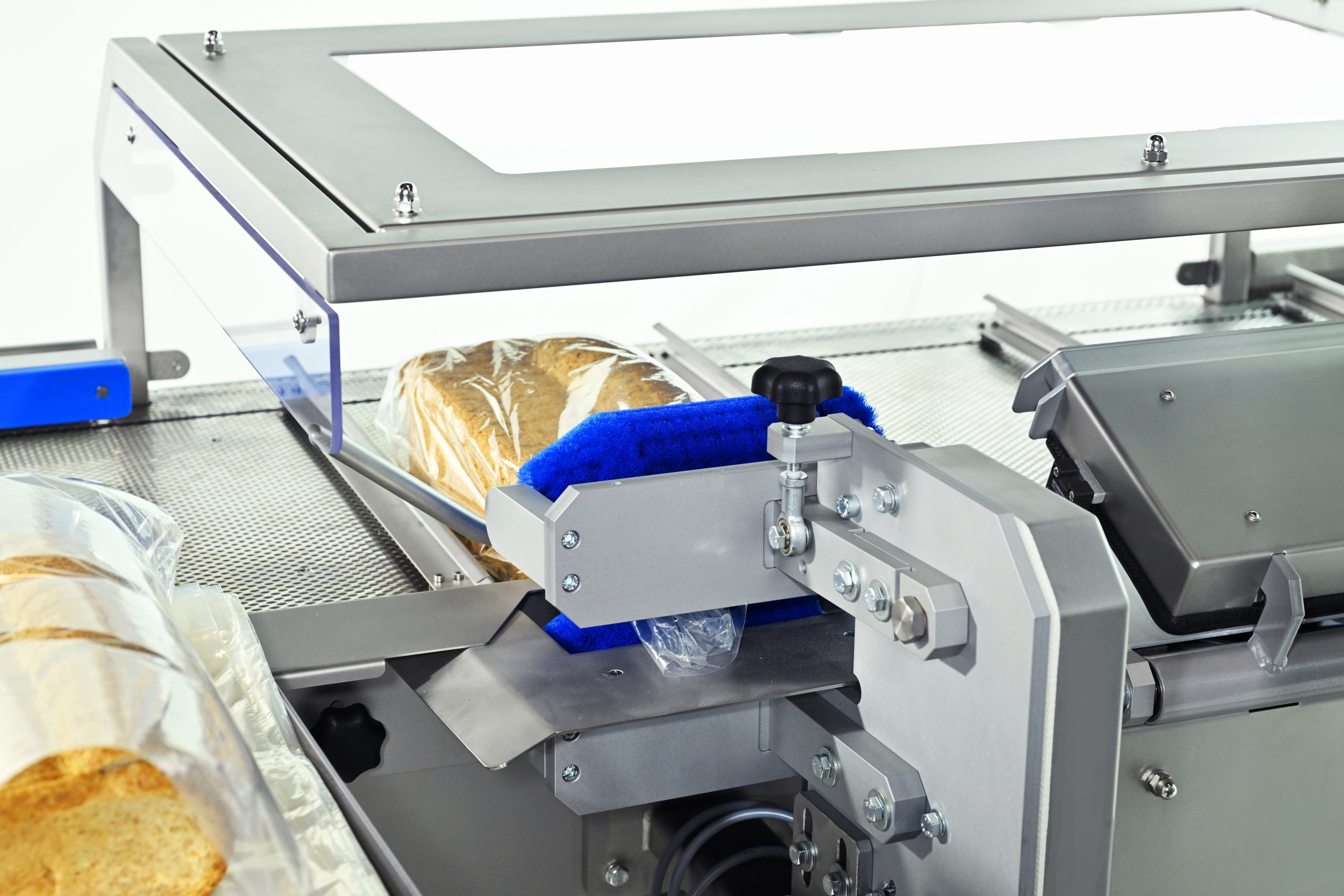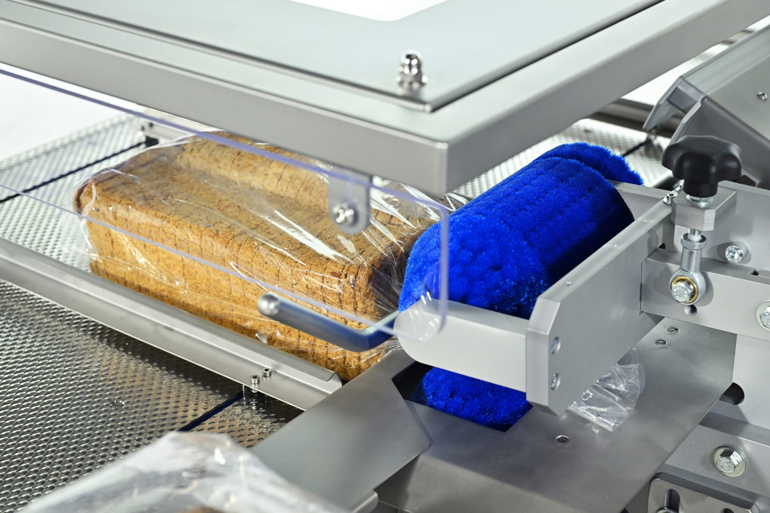 Na het snijden opent de zakopblazer automatisch de broodzak. Het gesneden brood wordt in één vloeiende beweging in de zak en op de transportbaan geschoven. Hierna brengt de transportbaan de zak met het gesneden brood naar het zaksluitsysteem waar deze wordt afgesloten.